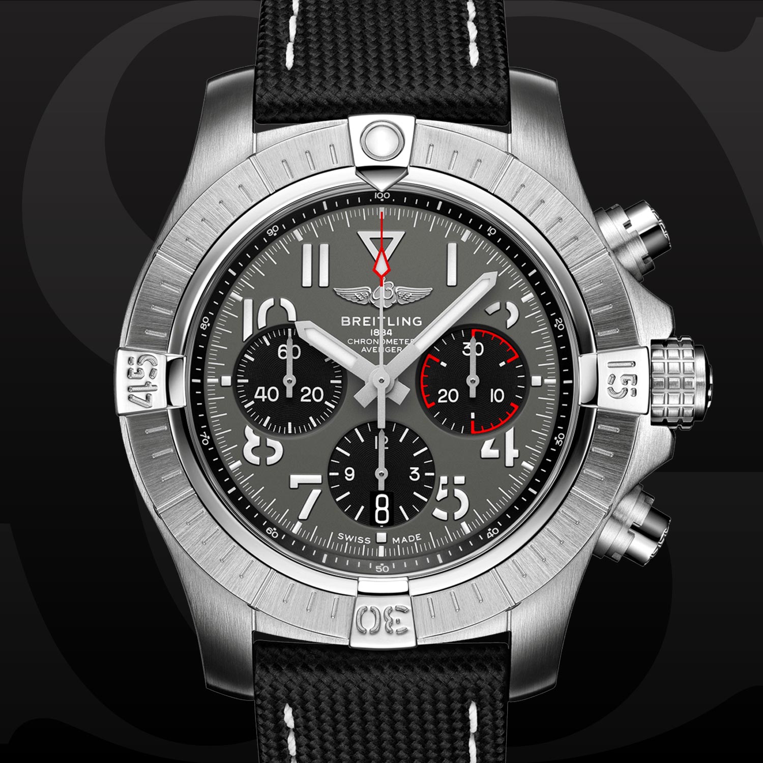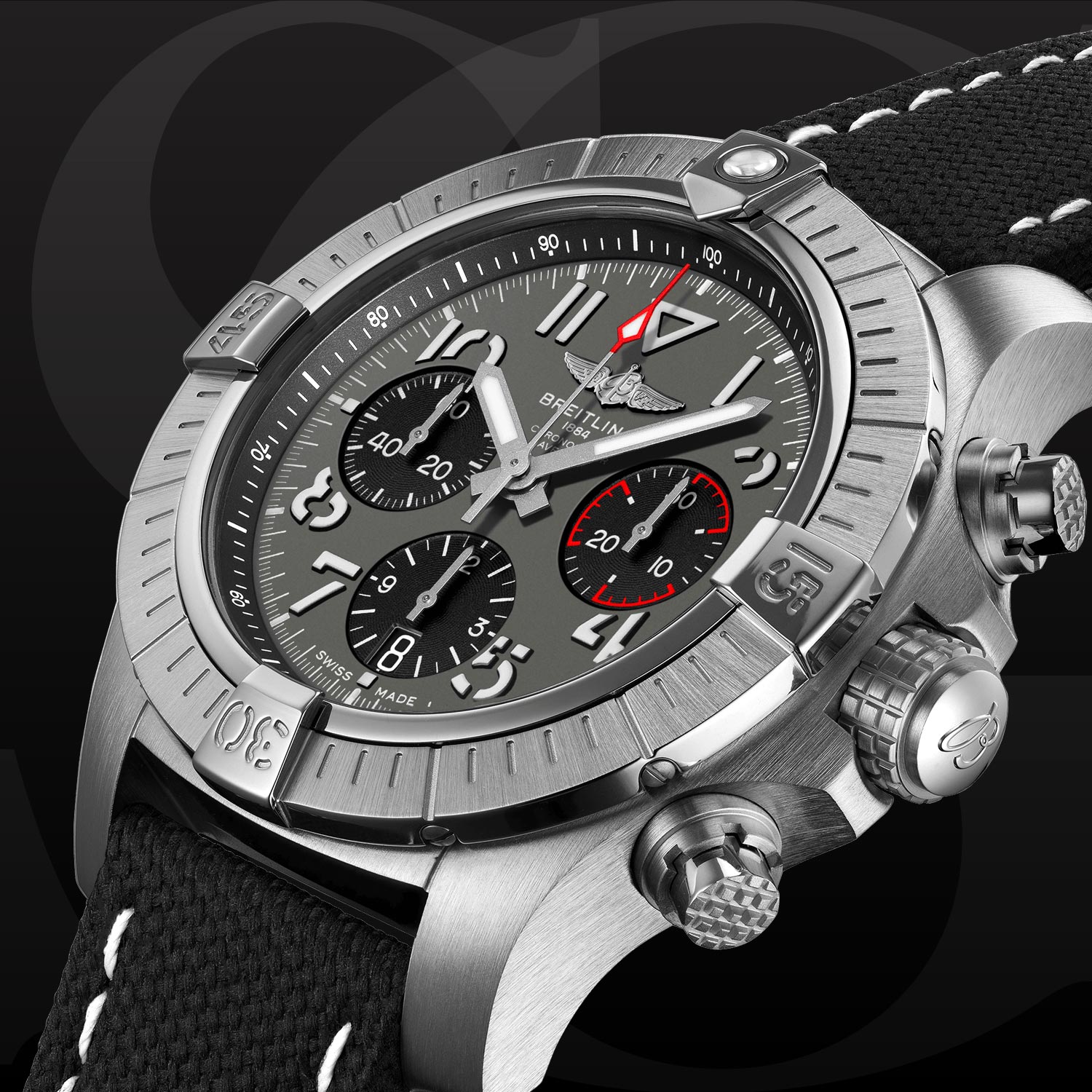Bold, extremely robust and shock resistant, the Avenger B01 Chronograph 45 combines precision with a powerful design. As a true Breitling Avenger, it can be used wearing gloves and offers unrivalled safety and reliability to any airborne adventurer. The Avenger B01 Chronograph 45 features a sturdy 45mm stainless steel case, anthracite or blue dial and a choice of a stainless steel bracelet, or matching black or blue military leather strap that fits either a stainless steel pin buckle or folding clasp. Thanks to its rugged bezel and its special grip-pattern on the crown and chronograph pushers, the Avenger B01 Chronograph 45 can be easily operated wearing gloves. This edition is limited to 500 pieces.